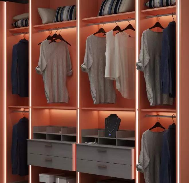 其次,空間明暗的設(shè)計(jì)。為了降低衣帽間大面積使用愛馬仕橙帶來(lái)“厚重深沉”的感覺,以明亮的燈帶作輔助,燈光之下,既獨(dú)特又貴氣十足還自帶時(shí)尚屬性,妥妥的年薪百萬(wàn)的標(biāo)配衣帽間。