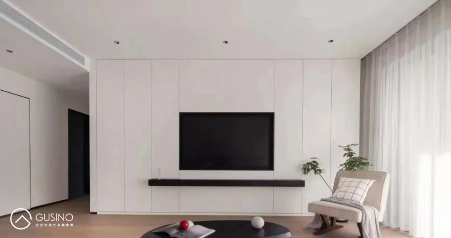 客廳的電視柜或者收納柜選擇白色,簡(jiǎn)約大氣的同時(shí),空間視覺變大,增加空間亮度,典雅大氣。