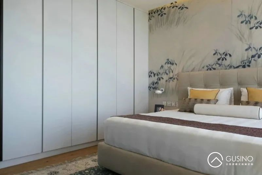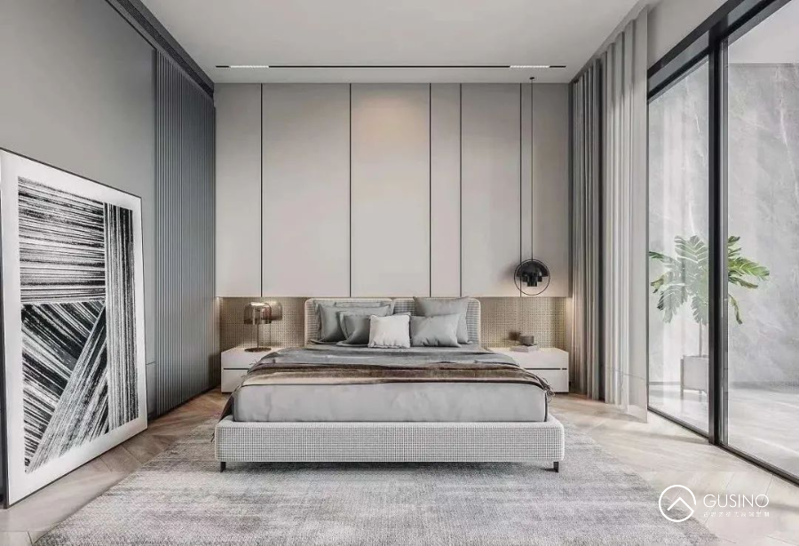 臥室忙碌一天的休息之地,選用白色作為主色能營(yíng)造出一種浪漫純潔的氛圍,代表著對(duì)純真、幸福美好的向往。白色從衛(wèi)生角度來(lái)看是最好的清潔色,具有抗光輻射的功能,能使房屋明亮度加強(qiáng),從而顯得室內(nèi)陽(yáng)氣,讓精神更好的放松。