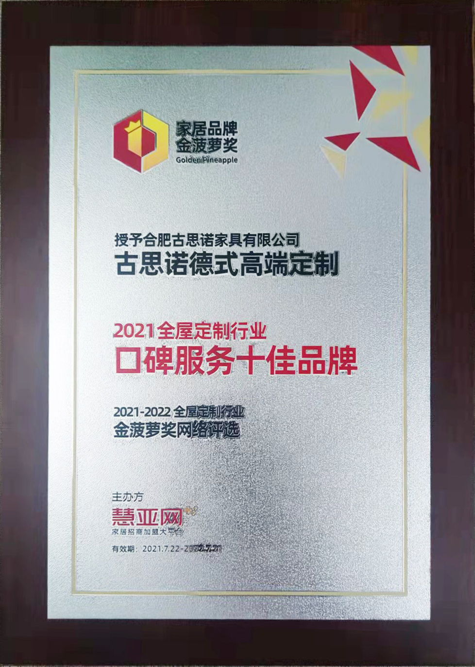 獲得了這次“2021年全屋定制行業(yè)口碑服務(wù)十佳品牌”,